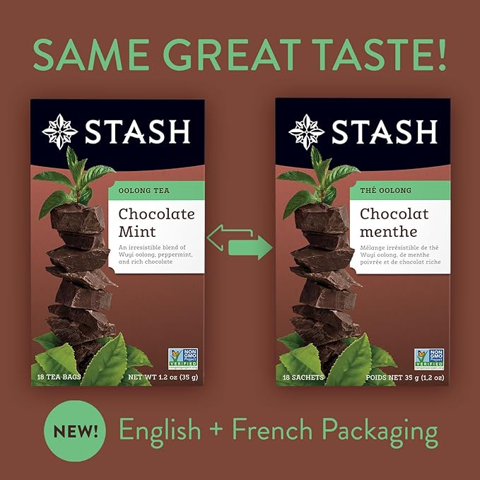 Stash Tea Chocolate Mint Wuyi Oolong Tea - Caffeinated, Non-GMO Project Verified Premium Tea with No Artificial Ingredients, 18 Count (Pack of 6) - 108 Bags Total