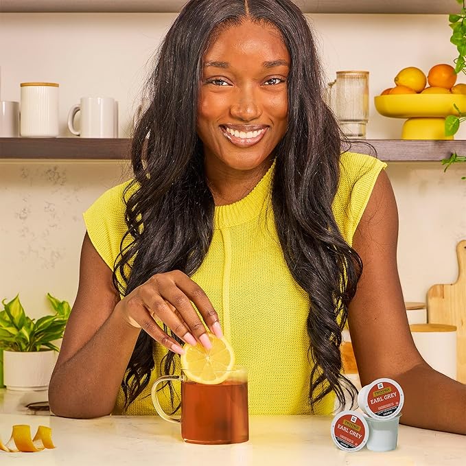 - EARL GREY TEA K-CUP PODS: One box of 24 Keurig Tea Pods; Fresh, fragrant and flavoured with distinctive notes of citrus and bergamot, this Earl Grey tea has all the taste of the original; Caffeinated Black Tea