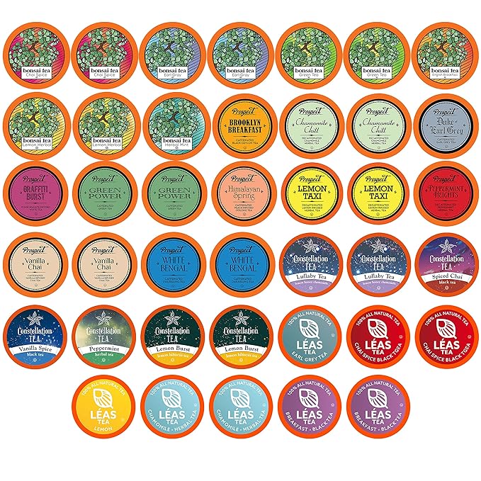 - Contains caffeinated and Decaf teas; black tea, Herbal tea and green tea. Individual flavor may vary!