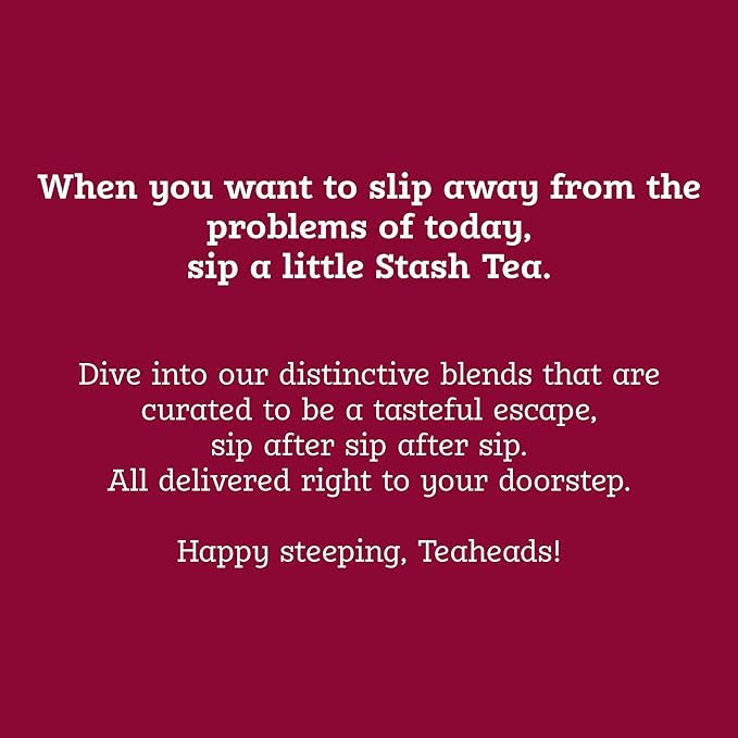 - Savour the Goodness: Our teas are made with top-quality ingredients that are meticulously chosen and blended to an artful balance. Every Stash Tea flavor is designed to turn your daily ritual into a joyful moment of tranquility