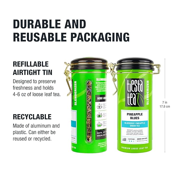 Tiesta Tea - Pineapple Blues, Premium Loose Leaf Blend, Blueberry Pineapple Green Tea, Refreshing Blend, Medium Caffeinated, Hot or Iced, Seasonal Flavors, 50 Cups, 5 Ounce Refillable Tin