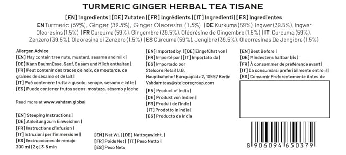 VAHDAM, Turmeric Ginger Herbal Tea (50+ Cups, 3.53oz) Caffeine Free | 100% Pure Herbal Blend - Savory & Spicy | Vacuum Sealed | Direct from Source