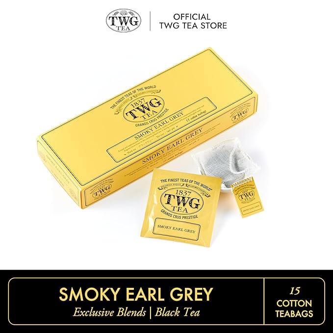 TWG Tea | Smoky Earl Grey | Black Tea | Bergamot | 15 Hand Sewn Cotton Teabags | Gift Set