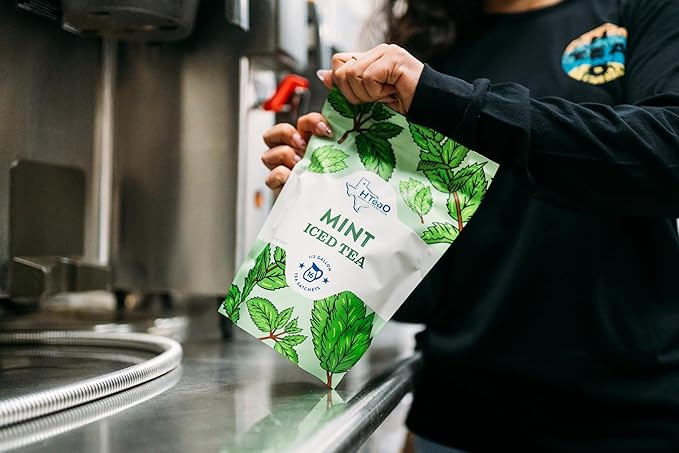 HTeaO Mint Black Iced Tea Bags – Makes 8 Gallons in 5 Minutes – Large Loaded Tea Sachets for Parties, Family Gatherings, & Groups – Texas-Style Ice Tea Packets for Quick Brew (16-Count)