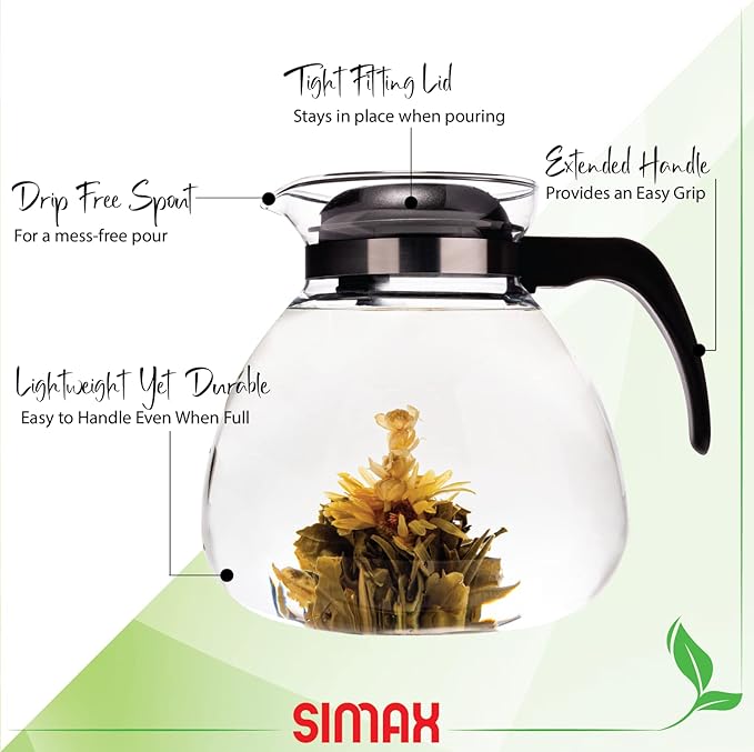 - MADE IN EUROPE: This gorgeous glass teapot is manufactured in the Czech Republic, so you can rest assured that you will receive a quality product that will last for years. Simax glassware does not absorb odors or flavors, and you do not need to worry about nasty chemicals making their way into your food.