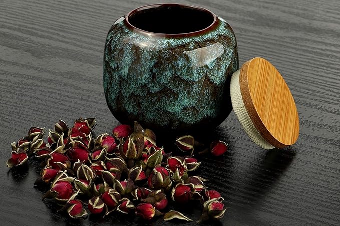 - 【Style】2.32oz/66g solid.Small and Exquisite Ceramic Food Canisters,you can use it for loose tea, coffee bean or other small things and put it on your dining table or kitchen as a decoration.
