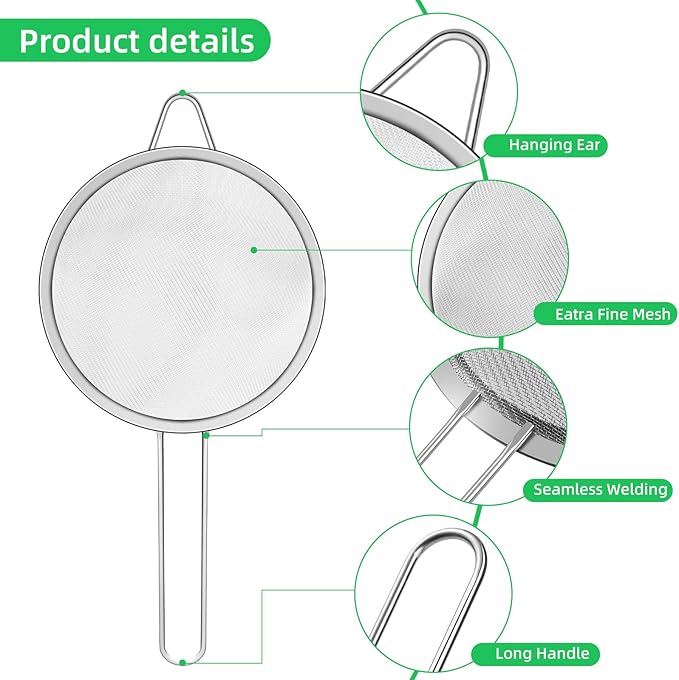 - Used for sift powdered sugar, coffee & flour, strain sesame seeds, separate foam, filter juice, etc..