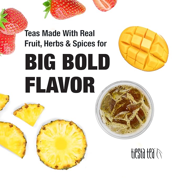 - REFRESHING TROPICAL STRAWBERRY PINEAPPLE GREEN TEA BLEND: Discover the vibrant, tropical flavor of Tiesta Tea’s Fruity Paradise Cold Brew Tea Packets. This refreshing blend of strawberry, pineapple, and mango combines the light, crisp taste of green tea with bold fruit notes. Perfect for cold brewing, each packet delivers a cool, invigorating experience, ideal for anytime you crave a deliciously smooth drink.