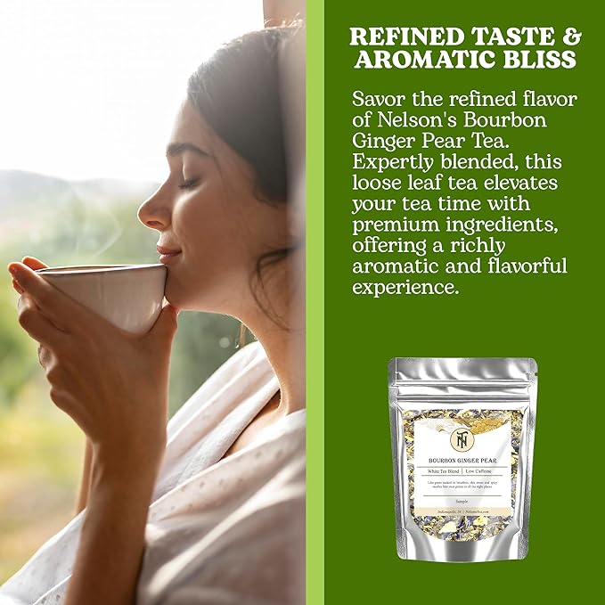 - SOPHISTICATED AND HARMONIOUS BLEND: Delight in the refined fusion of Nelson's Tea Bourbon Ginger Pear, featuring Green Rooibos, White Tea, and Ginger Root, accented with Elderflower, Cornflower, and dried Pears. This expertly curated blend delivers a smooth, aromatic experience with a hint of spice and subtle floral notes,
