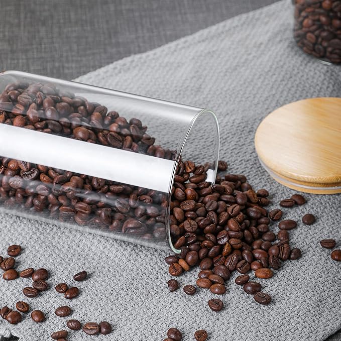 - Elegant Clear Glass Containers: With nature texture wood lid and a clear glass body, this super clean glass airtight container canister spruces up your kitchen while showing the contents storage inside. With retro style wooden cover top and exquisite style glass body design, this storage jar is also a modern decoration while taking full advantage of space for your cabinet and pantry countertop.