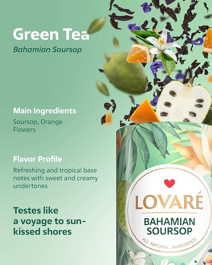 - Might of Forest in a Cup: Bahamian Soursop tea is produced from organic loose leaf green tea as a basis, while Soursop and Orange Blossom give tea a deep, rich, and fresh taste.