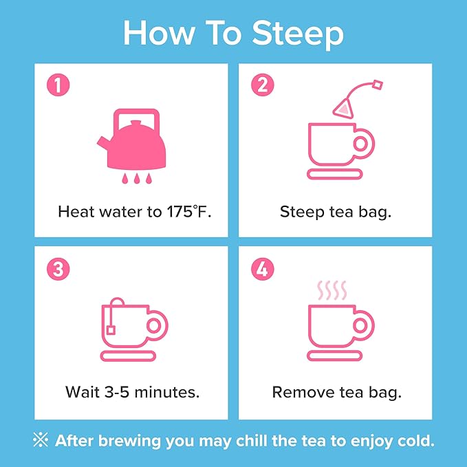 - Preparation method: steep in hot water for 3-5 minutes. Remove tea bag and mix with stirrer. Enjoy.