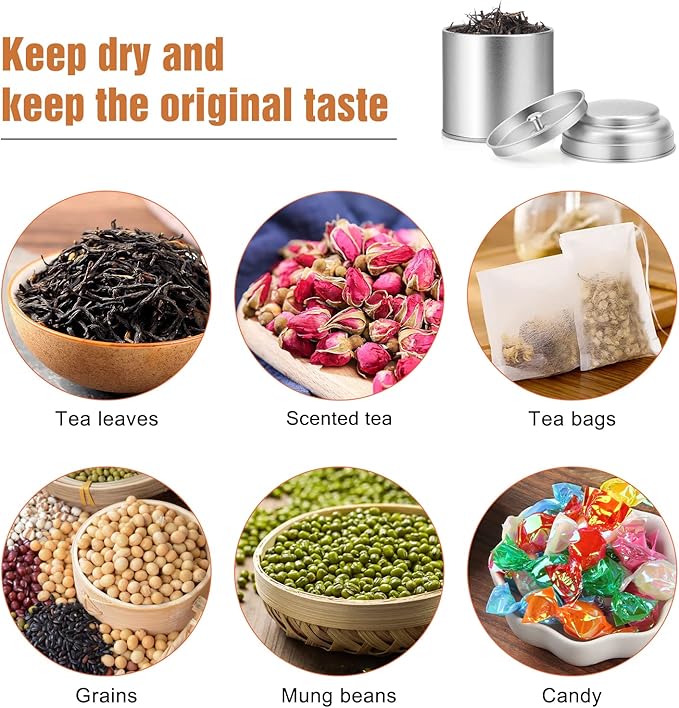 - 【Size Specification】The tea tins for loose tea are in silver, each size is about 3 inches/ 7.5 cm in diameter, about 3.6 inches/ 9 cm in height, and the capacity is about 8 oz; Enough quantity and appropriate size are suitable for storing tea, candy, nuts, etc., to meet your various needs.
