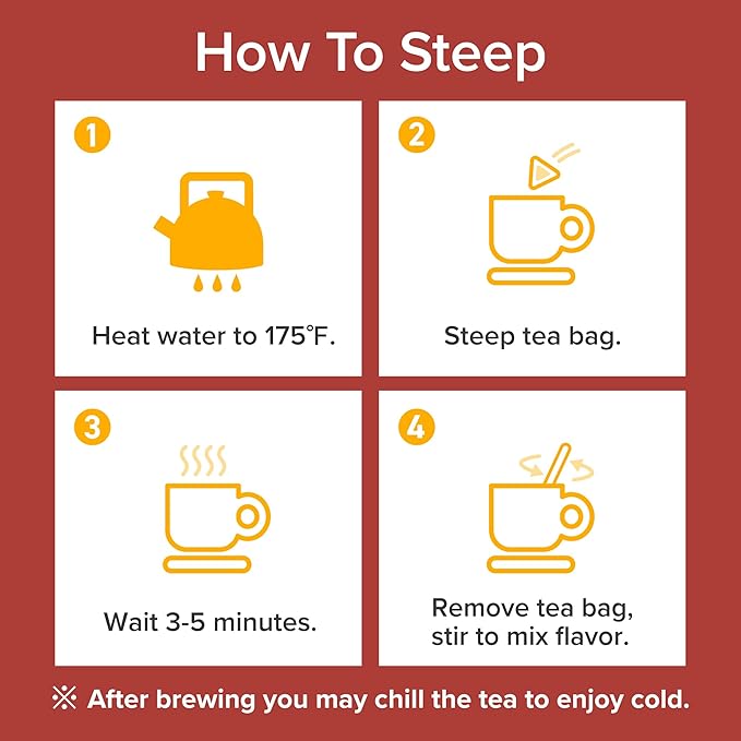 - Ready in minutes. Steep your teabag in hot water for 3-5 minutes. Remove the teabag and mix with stirrer. Enjoy.