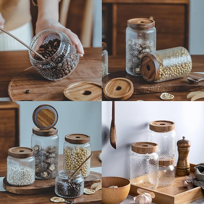 - 【Anti-Slip Coffee/Sugar Container】The texture of the Decorative glass jars with lids is great for preventing fingerprints.Clear jars with lids allow you to see the food inside clearly.