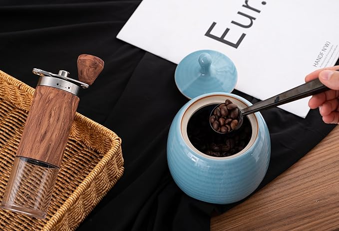 Kitchen Canisters Vintage Ceramic Food Storage Jar with Airtight Lid for Tea, Coffee, Herb, Sugar, Spice, Nuts (Blue(ICE))