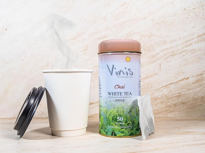 Vinis Premium Chai White Tea Tea Box of 6 Tins (50 tea bags per Tin) (Chai White Tea)