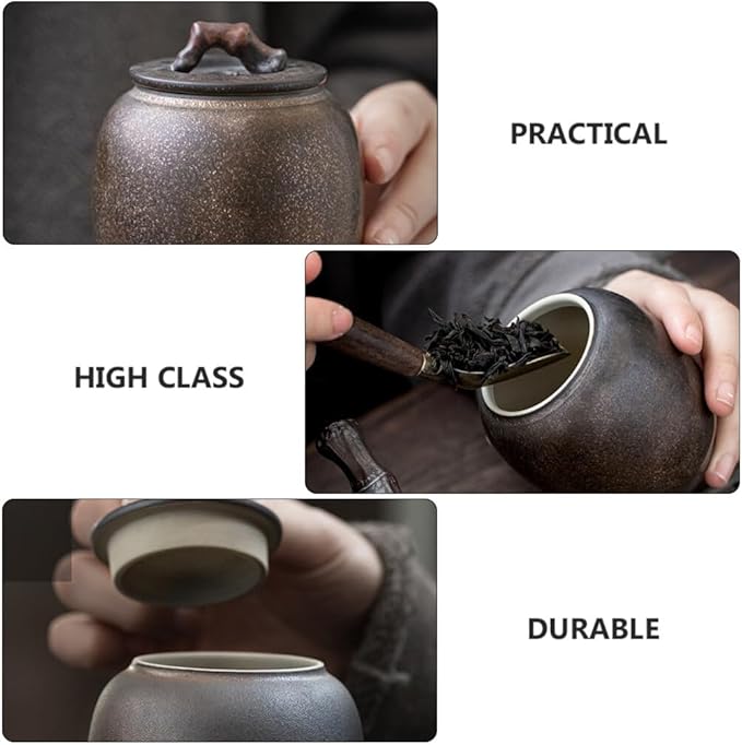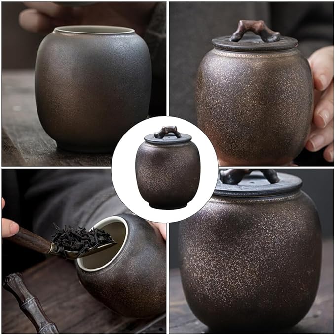 - Multi-Purpose - The ceramic jar with lid is suitable for holding matcha, coffee, sugar, loose leaf tea, flower buds, cookies, and spices, and can also be used as a unique home decoration