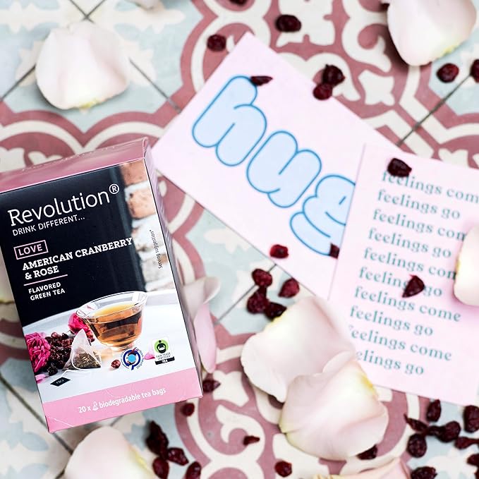 REVOLUTION TEA® Green Tea Cranberry & Rose [THE ORIGINAL] – American Cranberry & Rose – Premium Full Leaf Tea – Biodegradable Infuser Tea Bags – Flavored Green Tea – 20 Bags