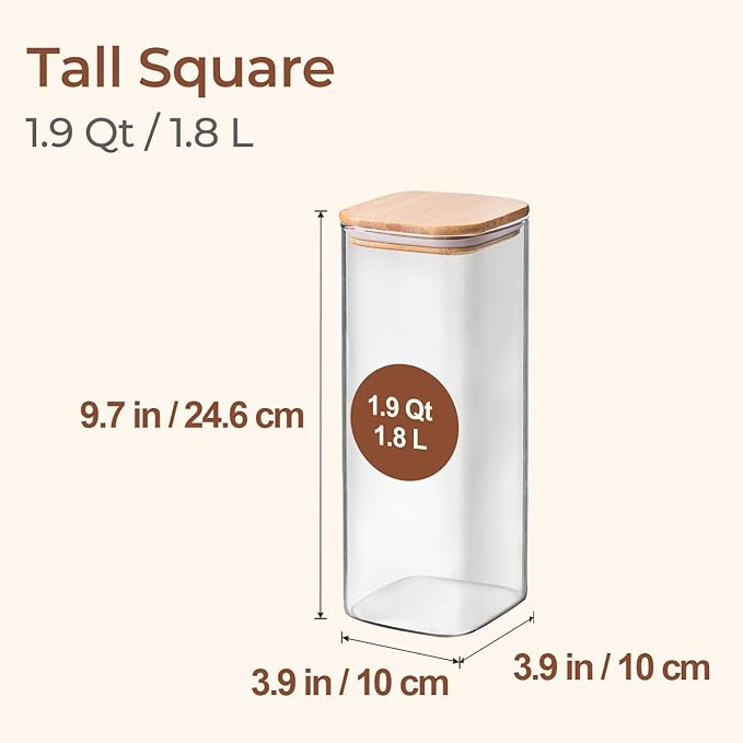 - Clear Kitchen Jars: Enhance your kitchen organization with our square square glass containers, featuring a transparent design; the see-through glass allows effortless monitoring of food levels, enabling you to track usage and assess food storage condition