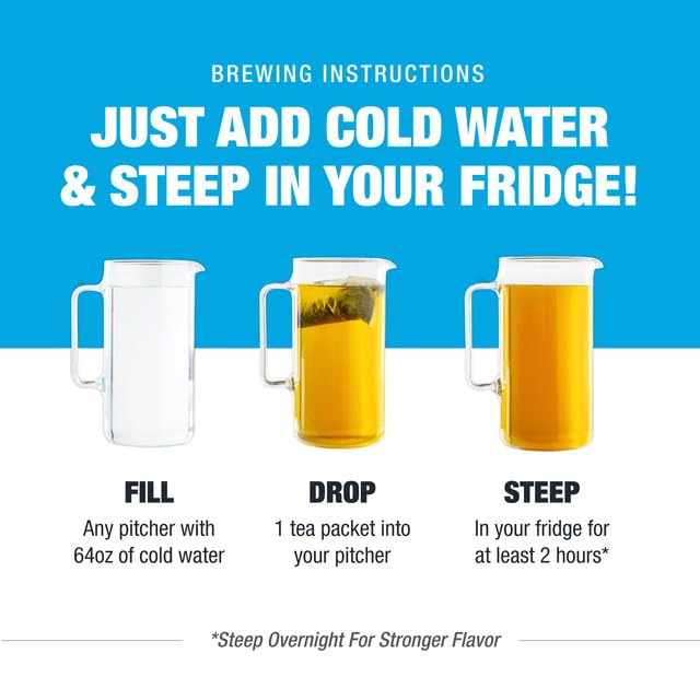- EFFORTLESS COLD BREW TEA PREP: Preparing cold brew tea has never been simpler with Tiesta Tea’s convenient, pre-measured packets. Just drop one packet into 64 oz of cold or room temperature water, steep it in the fridge for 1.5 to 2 hours, then remove the packet. Enjoy smooth, vibrant cold brew tea that’s ready to serve over ice—effortless, delicious, and refreshing.