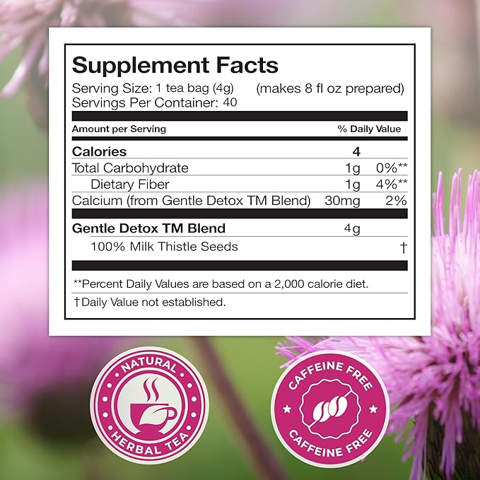 Total Tea 100% Natural Milk Thistle Seeds Tea for Liver Cleanse, Fruit Tea, Digestive Health and Immune System Support - 40 Count