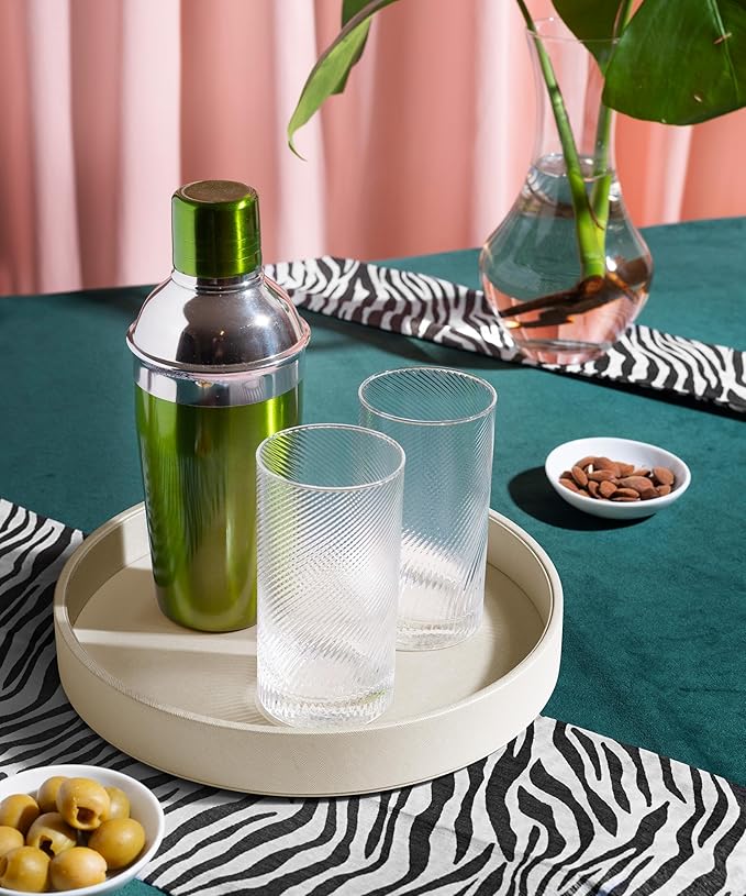 - ROUND SERVING TRAY: Outer dimension: 12.6 inch diameter x 1.6 inch height / 32 cm diameter x 4 cm height, the handy size can be adapted to any situation of use.