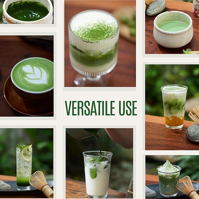 - VERSATILE MATCHA MAGIC: Our finely ground ceremonial grade matcha powder dissolves seamlessly using a matcha kit, matcha whisk set, or cooking tools, making it perfect for a variety of ceremonial grade matcha experiences, from traditional matcha tea (usucha), lattes, smoothies to baking or cooking recipes. Whether you're enjoying a classic cup of ceremonial matcha or exploring new culinary creations, its rich, authentic flavor enhances every experience.