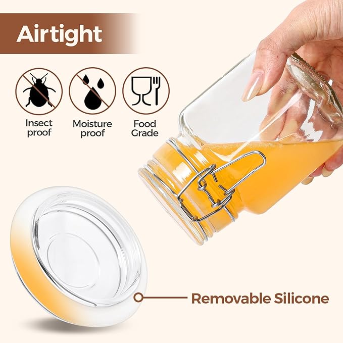 - Leak-Proof Small Jars: These food-grade canning jars 8 oz feature silicone gaskets and stainless steel clips for airtight sealing. Ideal for keeping food fresh for storing liquids like dressings, sauces, jam and soups