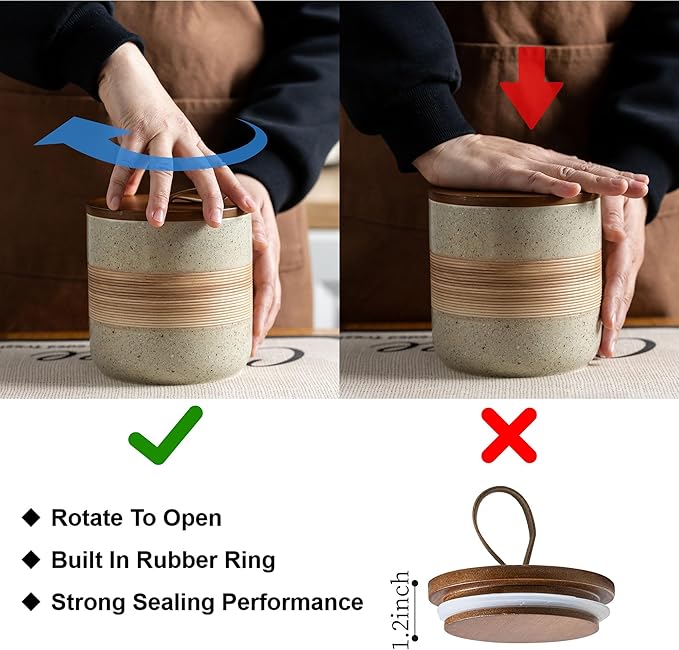 - Rope Cover Design: Each food storage container is equipped with a wooden lid, which has strong sealing and effectively isolates air, moisture, and odors, keeping food dry and fresh, and extending the shelf life of food. There is a unique rope design on the lid, which is easy to open without losing its beauty