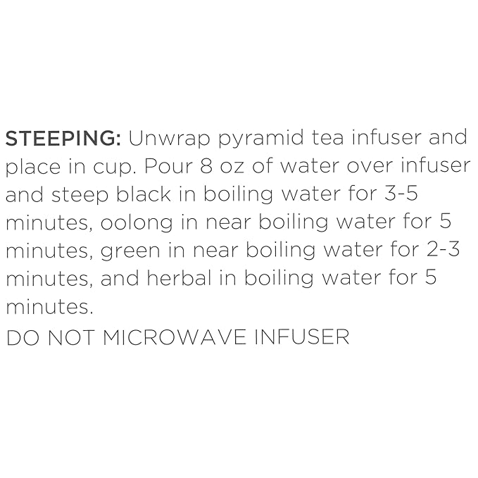 - HOW TO STEEP - Unwrap the Pyramid Infuser, steep in hot water, and reveal the exquisite nature of the whole leaf teas. Allows the tea leaves to fully unfurl in the water, resulting in a most flavorful cup of tea. Do not microwave pyramid infuser.