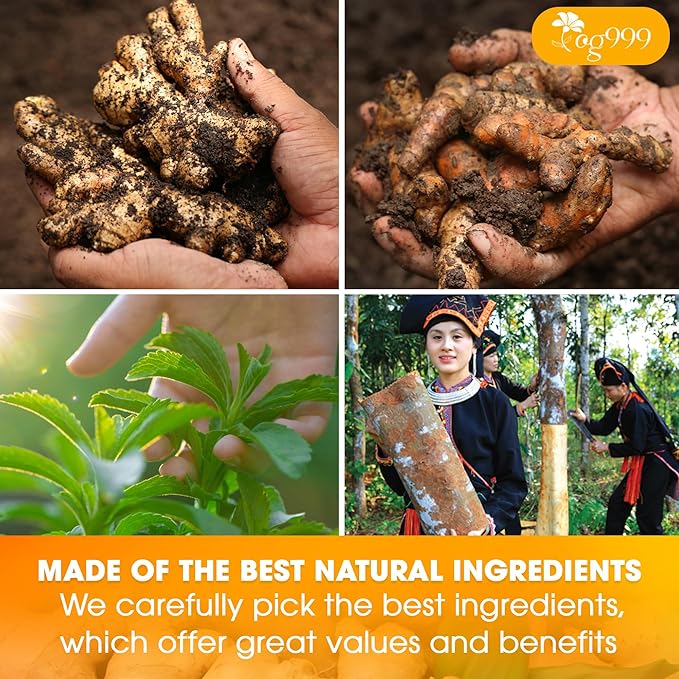 TOG999, 20 Tea Bags of Ginger, Turmeric and Cinnamon, Upgraded Version, 100% Natural, Hand-made Blend of Ginger, Turmeric, Cinnamon, Orange Peel, Black Pepper, Stevia Leaves, Jasmine. No Sugar, Vegan.