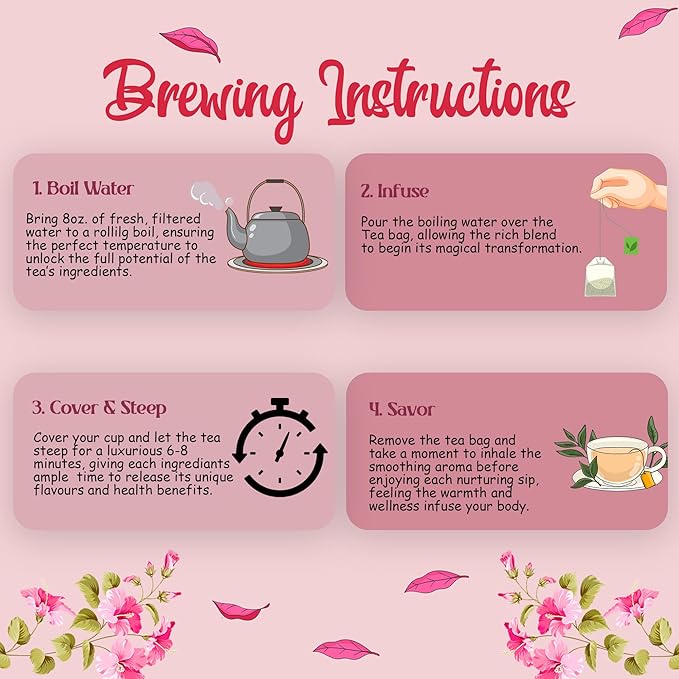 - ⭐ How to Brew –Steep 1 tea bag in 8 oz of freshly boiled water for 6–8 minutes. Best enjoyed warm and fresh.