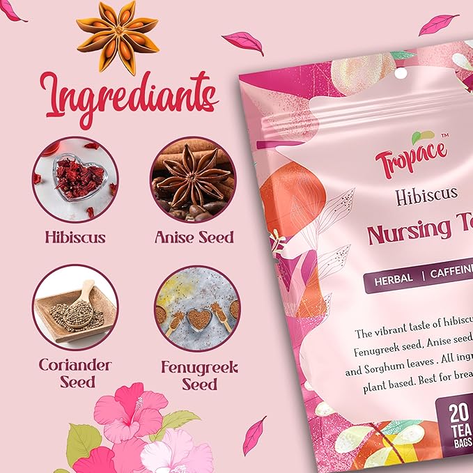 Tropace Organic Hibiscus Nursing Tea – Herbal Caffeine-Free Tea for Moms, with Fenugreek, Anise, Sorghum & Coriander – Rooted in Africa, Packed in USA – 20 Tea Bags, 1.4 oz (40g)