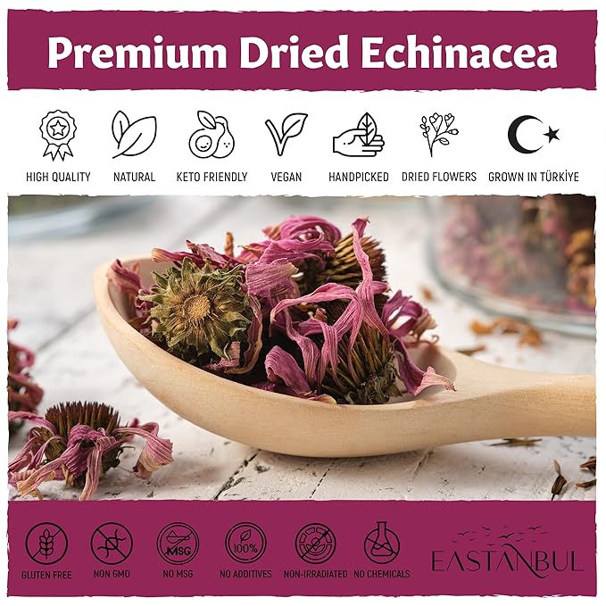 Eastanbul Echinacea Purpurea, 4.2oz Dried Echinacea Flowers & Leaves, Loose Leaf Whole Equinacea Herb, Premium Quality, Herbal Tea & Infusion, Non-GMO, Vegan, Gluten Free, 100% Natural