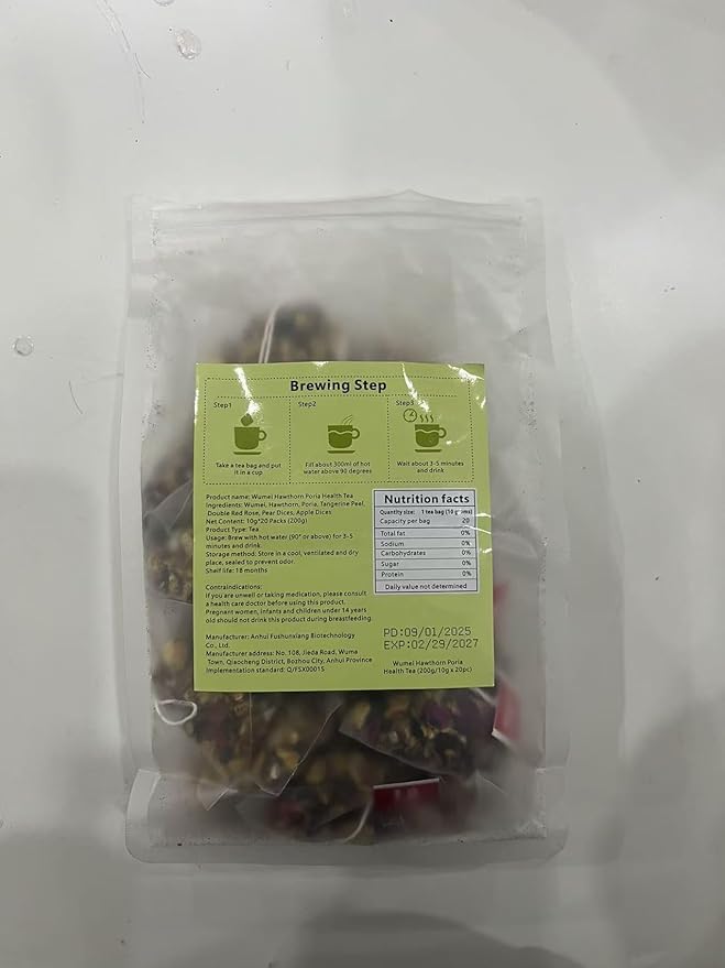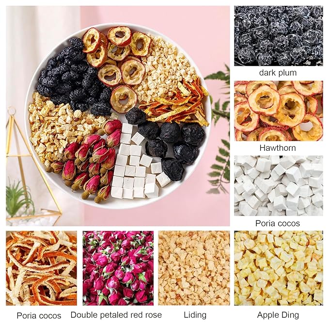 - 7 Natural Ingredients, Caffeine-Free: Each bag contains a harmonious blend of 7 natural herbs and fruits, Contains Hawthorn, Hibiscus, Tangerine Peel, and Rose. It's 100% caffeine-free, perfect for any time of the day.