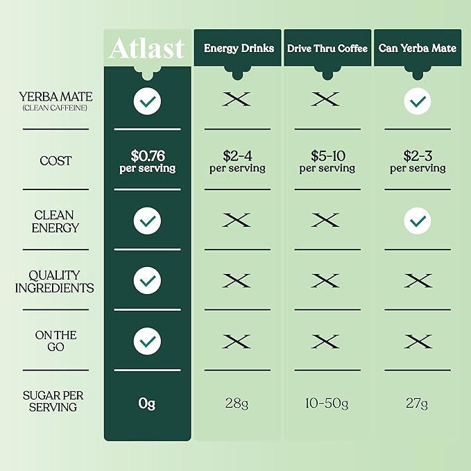 - Better Than Coffee – Smarter Morning Boost. Upgrade your routine with Atlast unroasted yerba mate, a natural coffee alternative! Packed with clean caffeine, antioxidants, vitamins, and minerals, it delivers sustained energy and mental clarity without jitters or crashes. Support your well-being with every sip—free from synthetic ingredients or harsh additives. Easy to prepare and perfect for busy mornings or any time you need a healthy energy boost. Discover why yerba mate is the smarter, better choice for all-day focus and vitality.