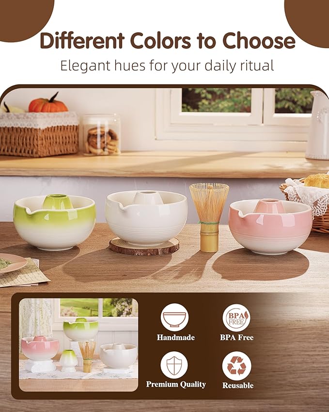 - High-Quality Matcha Bowl & Holder – Made from durable, high-temperature fired porcelain, the matcha bowl and whisk holder are lead-free, microwave-safe, and dishwasher-safe. The glossy white glaze with simple circular embossed texture adds an elegant, natural touch to your matcha tea ritual.