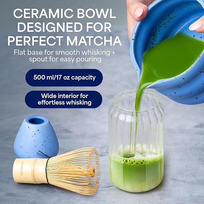 - Premium Quality: Crafted from food-grade, lead-free, and cadmium-free materials, this matcha bowl is built for durability and long-lasting use. Its wide-mouth design allows for effortless whisking, and it is both microwave and dishwasher safe for added convenience. The matcha whisk is made from 100% natural bamboo, free from varnishes, chemicals, or artificial coatings, ensuring a pure and authentic matcha experience.