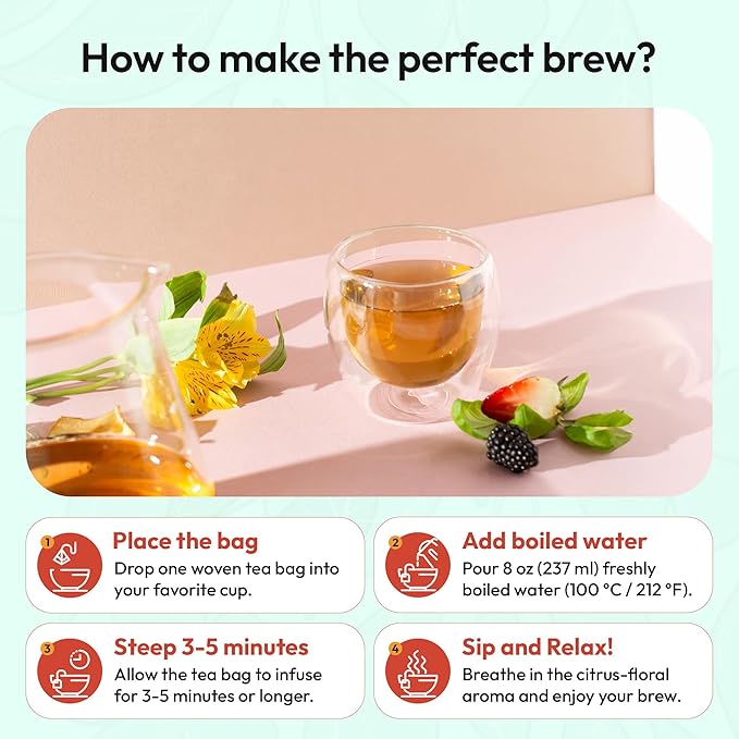 - Versatile Brewing Options: Enjoy as hot tea or as refreshing iced tea, sweet tea or cold brew tea; 25 woven tea bags provide convenience of tea pods with loose tea leaves quality; makes excellent decaf tea alternative to tea sets with multiple varieties