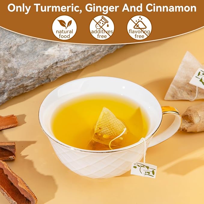 BEICAI 240g/120-Count Premium Turmeric Ginger Cinnamon Tea Bags | 100% Natural, Triangular Corn Fiber for Full-Bodied Brew | Supports Digestive & Immune Health (120)