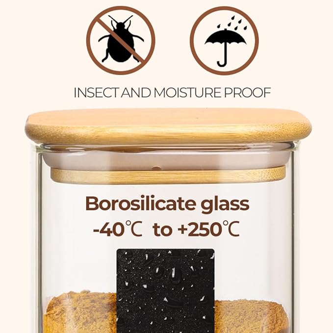 - Stylish Spice Jar Set: 8 oz Clear jars with bamboo lids are both functional and visually appealing, making spices easy to spot and stay fresh. Nice and cute look makes the 8 oz glass jars with lids as a good gift for anyone who loves kitchen organization