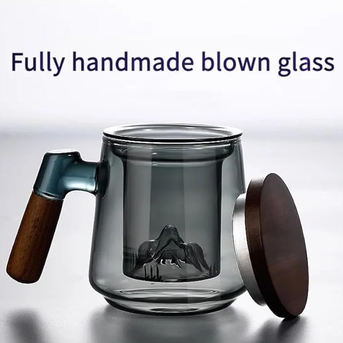- 【Unique Design】: The solid wood lid is used to cover the mug when brewing tea and serve as a strainer holder after brewing. The ergonomic grasp handle is heat resistant and skid proof to make the cup easy to hold. The completely handcraft tea cup is extra thicker than other glass tea cups.