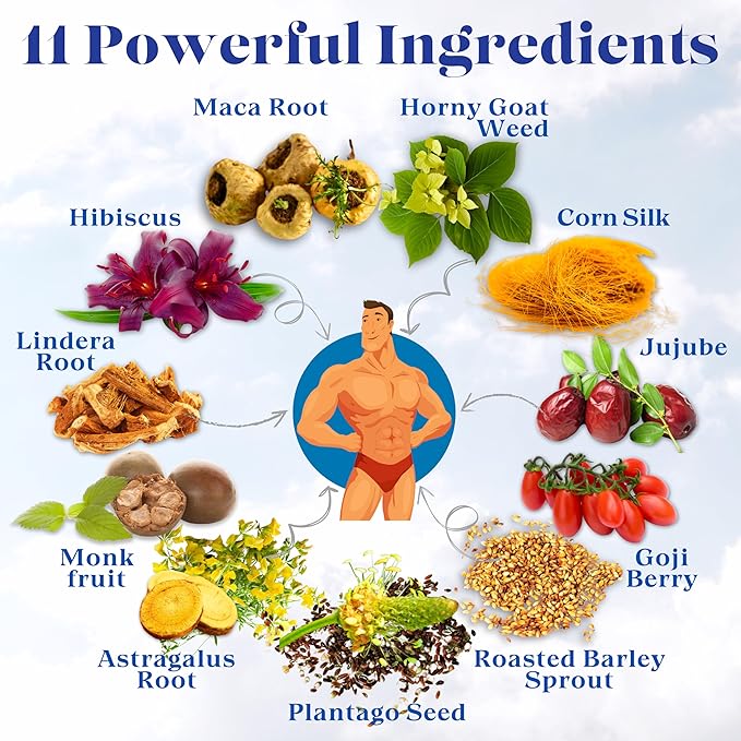 - 🌿 SUPPORTS MALE VITALITY & REPRODUCTIVE WELLNESS Includes key herbs like maca tea, goat weed tea, and hibiscus tea to help sustain natural stamina and support reproductive strength in men.