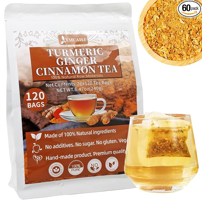 120 Premium Turmeric Ginger Cinnamon Tea Bags, 100% Natural Herbal Blend, Supports Digestion & Immune Health, No Sugar, No Caffeine, No Additives, Vegan, Premium Ingredients