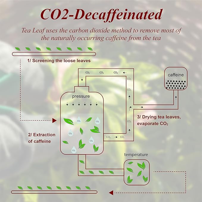 - 【Naturally Decaffeinated with CO2】Using advanced carbon dioxide processing, caffeine is gently removed without chemicals—preserving the tea’s authentic aroma naturally and safely