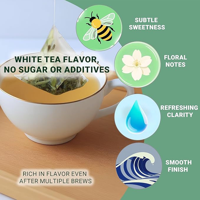 - Convenient Design: Packaged with 30 pyramid tea bags, each containing 2 grams of tea, this elegant design makes brewing a cup of jasmine white tea effortless and enjoyable, whether at home or on-the-go.