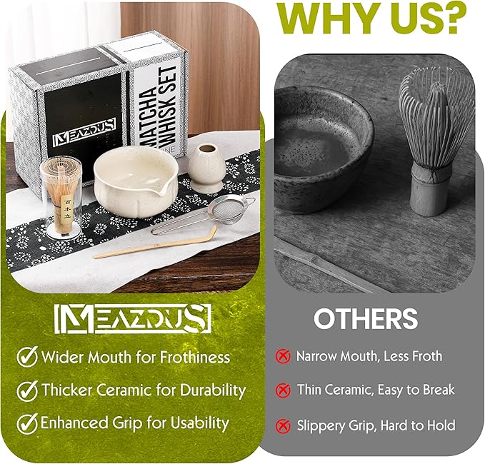 - THOUGHTFUL DESIGN – Our matcha chawan bowl and whisk holder are crafted from extra-thick, heavyweight ceramic designed to resist wear and tear from daily use.