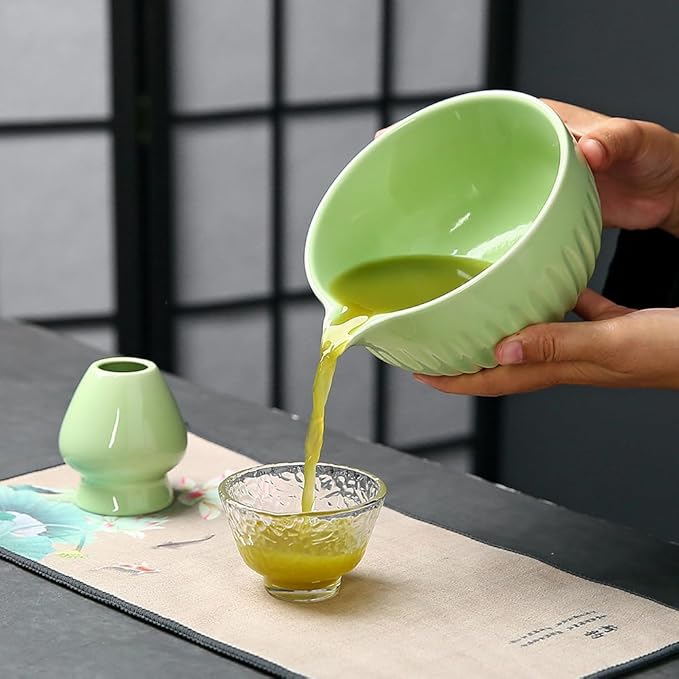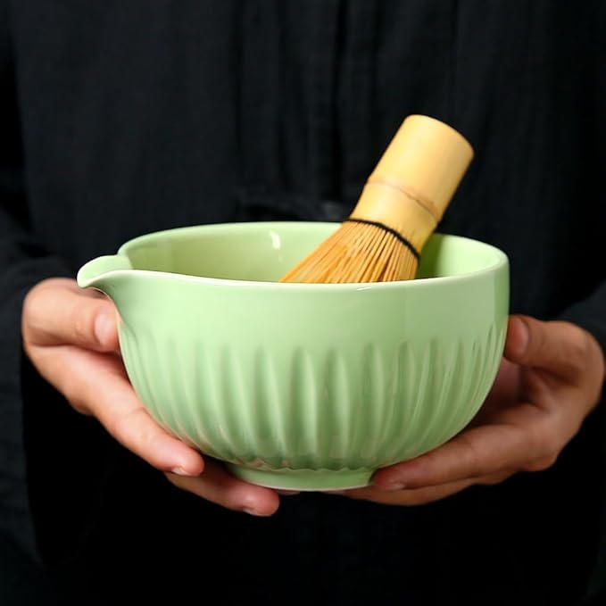 - Handcrafted Ceramic Texture & Japanese Aesthetic Appeal: Made of premium Handcrafted Ceramic,matcha bowl features a fine and smooth surface, paired with a classic green glaze that perfectly captures Traditional Japanese Style. With clear textures, the entire set combines practical functionality and decorative charm, exuding elegance whether used daily or displayed on the desktop.