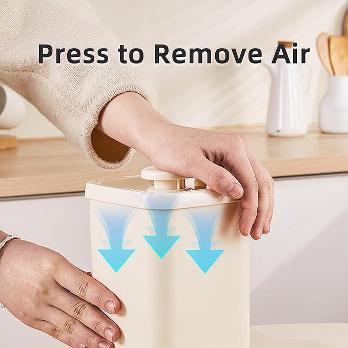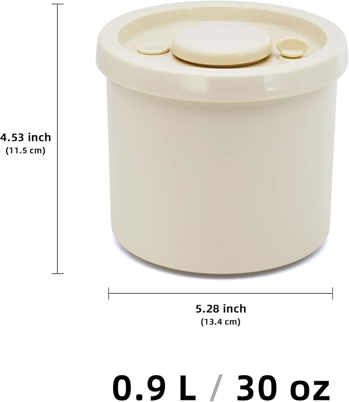 0.9L Vacuum Sealed Food Storage Container with Lid, Small Airtight Canister for Coffee, Tea, Snacks, Sugar, Flour, Dry Food, Compact Plastic Vacuum Bucket for Kitchen (Beige)